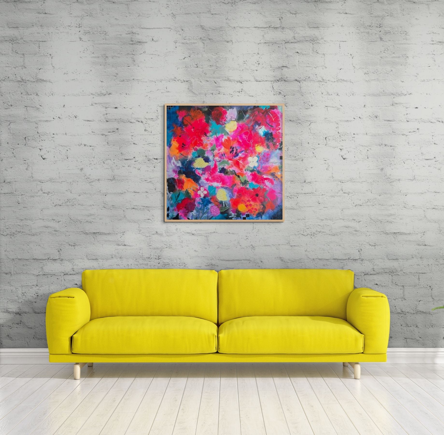 This brilliantly colored, bold painting was such a joy to create. It is full of bright splashes of color with interesting textures and playful marks. If you are looking for art that draws the eye and lifts the mood of a room, this is the painting for you.
